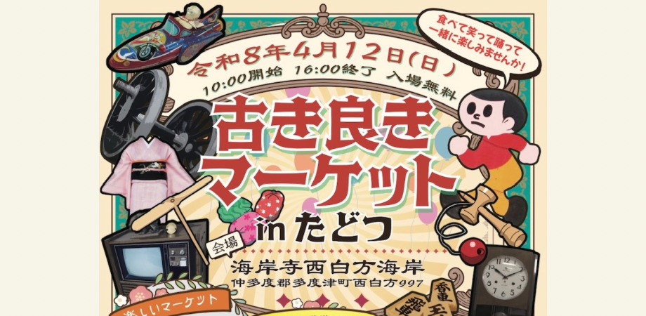 - 「古き良きマーケットinたどつ」に出演今年も多度津の海岸寺西方海岸で開催されるイベントに参加します!時間は11時30分頃から20分の予定です。懐かしの昔遊びやキッチンカーフリーマーケットも開催しているそうです。今から伺うのが楽しみです✨お時間ある方は遊びに来 […]
